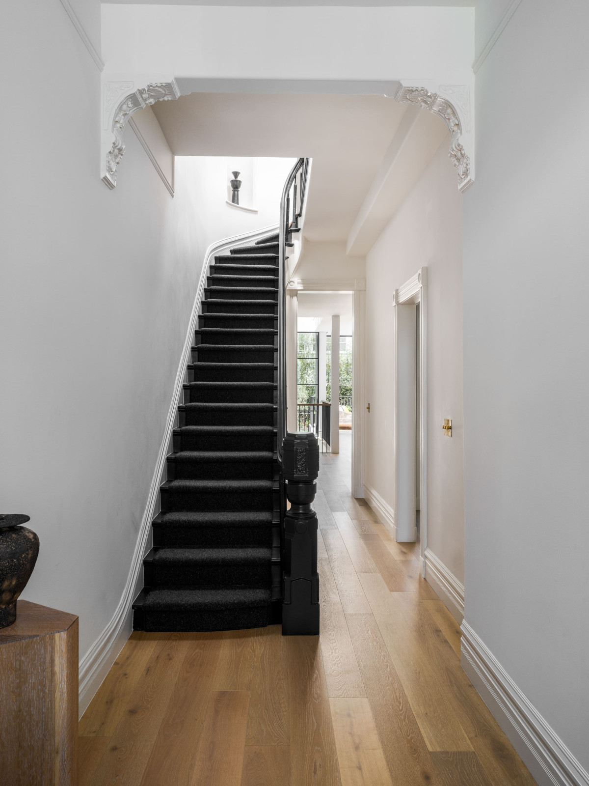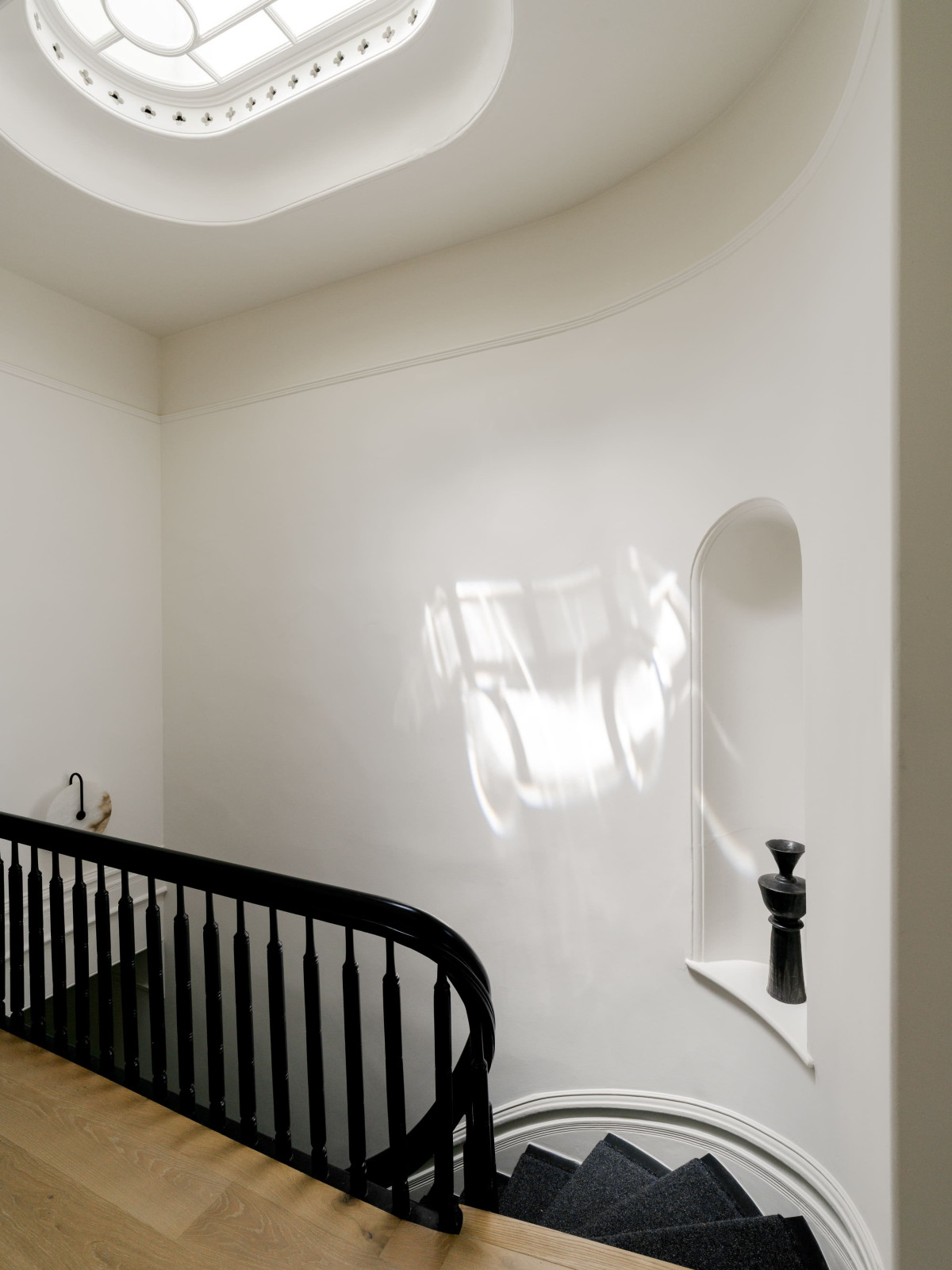 Oprócz przystosowywania wnętrz do współczesnych potrzeb czteroosobowej rodziny, ważnym aspektem projektu była renowacja zabytkowych elementów, w tym fasady domu, którą oczyszczono i wymieniono okna na drewniane modele do złudzenia przypominające te oryginalne, a także klatki schodowej i balustrady, które od początku XX wieku były wielokrotnie przemalowywane. Po zdjęciu nagromadzonych przez ponad 100 lat warstw farby, udało się przywrócić im ich pierwotny wygląd.