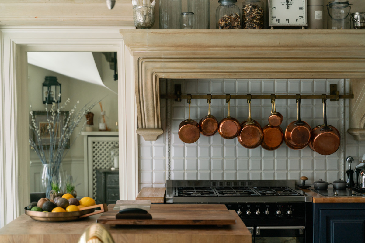 Kuchnia z wolnostojącą wyspą to miejsce, w którym wygoda użytkowania spotyka się z wysmakowaną estetyką. Znajdziemy tu najnowocześniejsze urządzenia AGD i meble w stylu klasycznym z dekoracyjnymi frontami. Przestrzeń kuchenna została połączona z dobudówką w formie oranżerii, która pełni funkcję codziennej jadalni dla domowników.