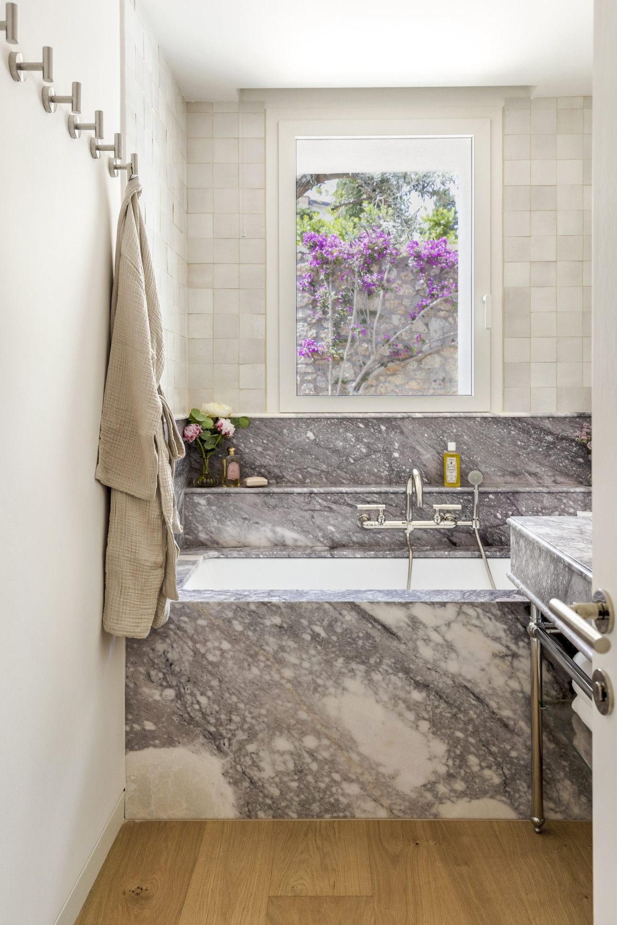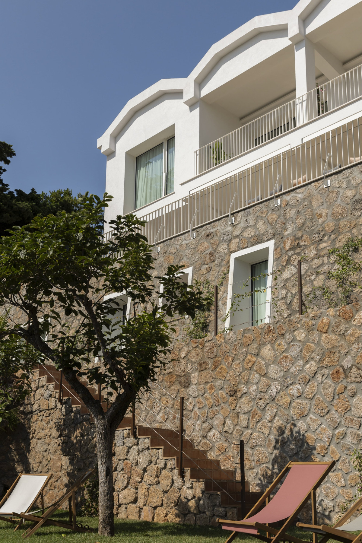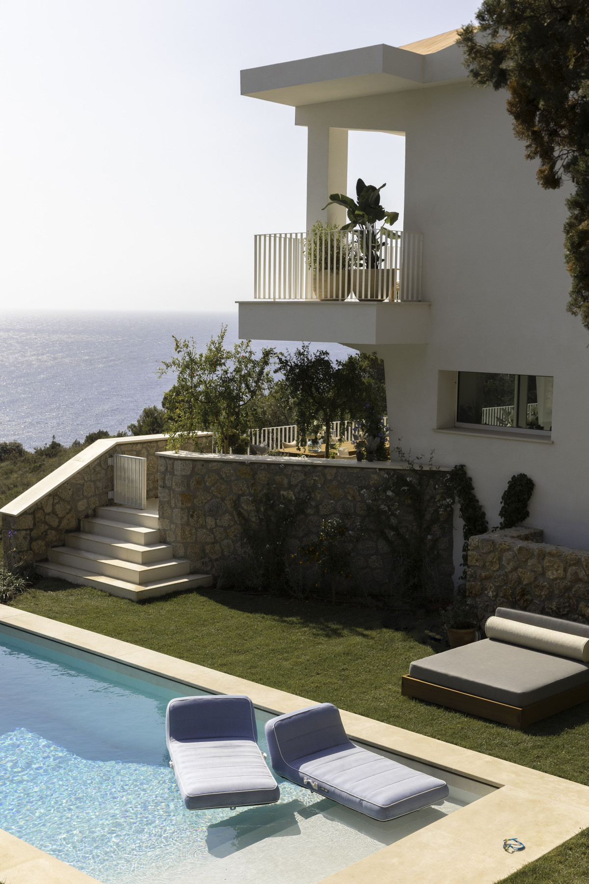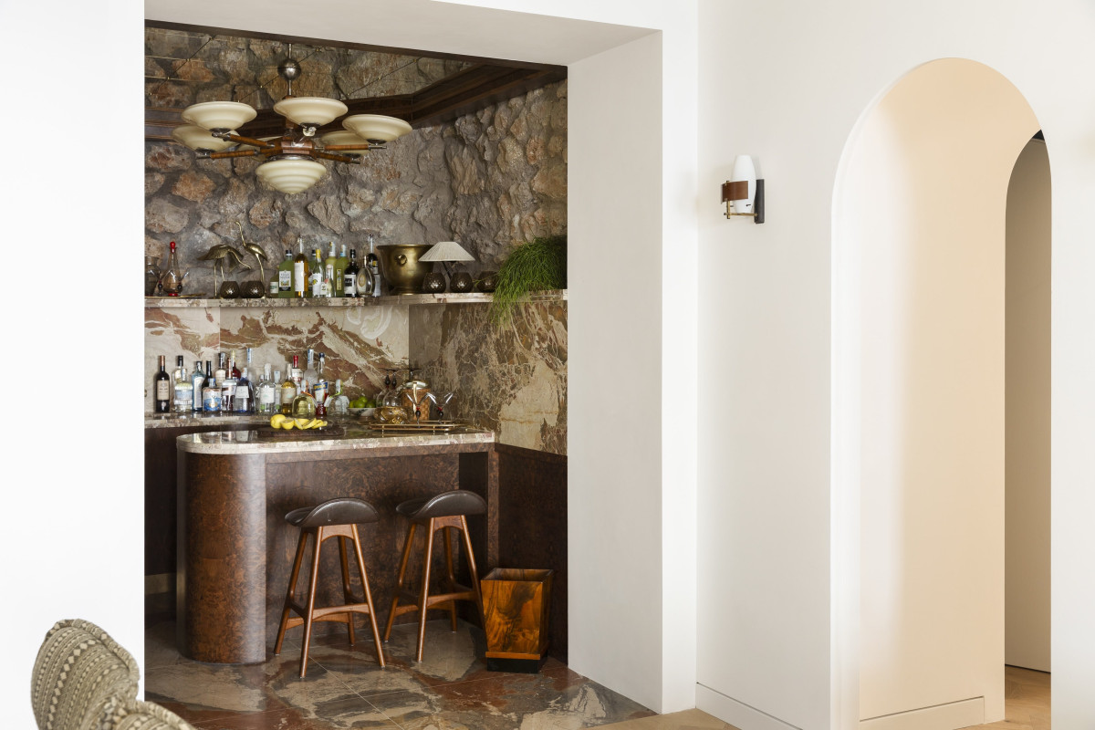 Willa przeszła kilka znaczących zmian. I tak wszystkie małe okna zostały zastąpione większymi, by otworzyć dom na morze i zachód słońca. Powiększono też taras wychodzący bezpośrednio z kuchni – z niego można dostrzec Korsykę i Sardynię. Podczas remontu odsłonięto również fragment oryginalnej skalnej ściany, na której stoi dom, wkomponowując go w wystrój baru.
