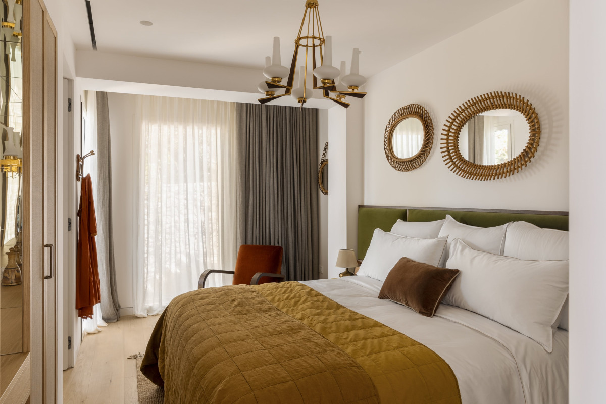 Kolory wnętrz inspirowane są marmurami sprowadzonymi z kamieniołomów w okolicach jeziora Garda (ale nie tylko). Nasycone barwy sprawiają, że willa jest przytulna także w chłodniejszych miesiącach. Sypialnie z widokiem na morze utrzymane są w różach, szarościach i błękitach, a te od strony ogrodu – w żółciach, zieleniach i bieli.