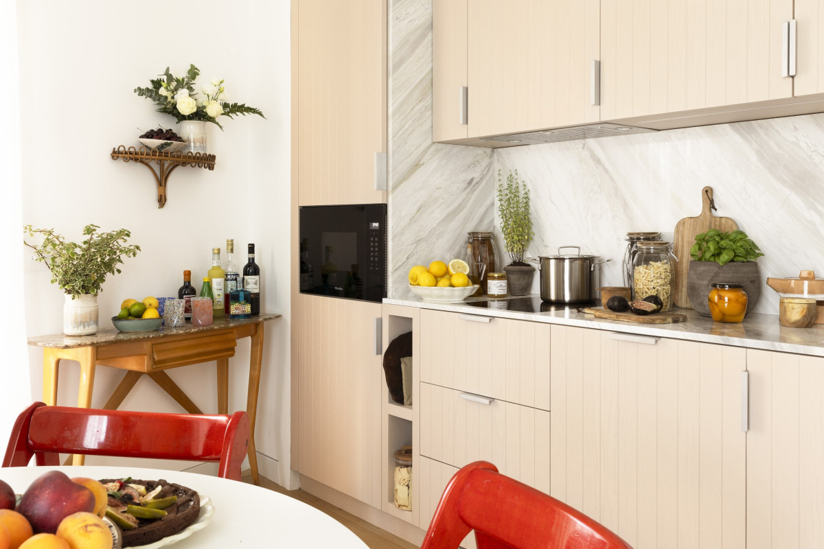 Zarówno projektantce, jak i właścicielom zależało, by dom zachował włoski klimat. Vicky postanowiła też nawiązać do czasu, w którym willa powstała – do stylu retro i klimatu włoskich posiadłości z lat 70. We wnętrzach znalazły się więc meble i oświetlenie pochodzące z włoskich pchlich targów i sklepów z antykami. Tapety w sypialniach to wzory inspirowane XVI-wiecznym włoskim parkiem „Parco dei Mostri di Bomarzo” nad jeziorem Bolsena, oddalonym od willi o kilka godzin jazdy.