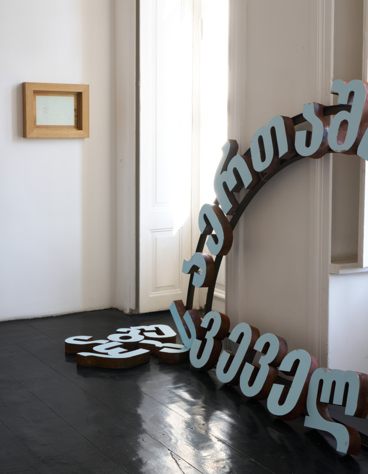 Tolia Astakhishvili “საერთაშორისო (International) II, 2025 Black metal (rebar), metal sheet of rebar, protective coating 145 × 240 cm